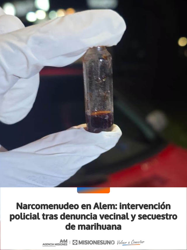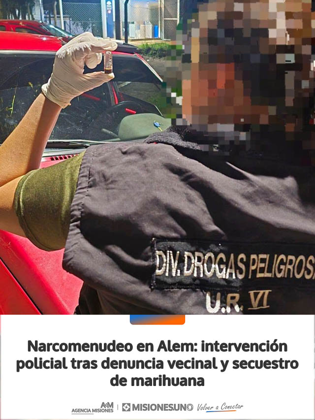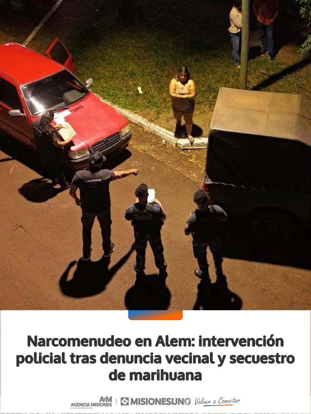 El procedimiento se llevó a cabo el domingo cerca de las 23:45, en la intersección de las calles Rivadavia casi Corrientes, en la localidad de Leandro N. Alem. Efectivos de la División Drogas Peligrosas, junto a la Guardia de Infantería de la Unidad Regional VI, acudieron al lugar tras la advertencia de un vecino sobre una posible actividad de narcomenudeo.